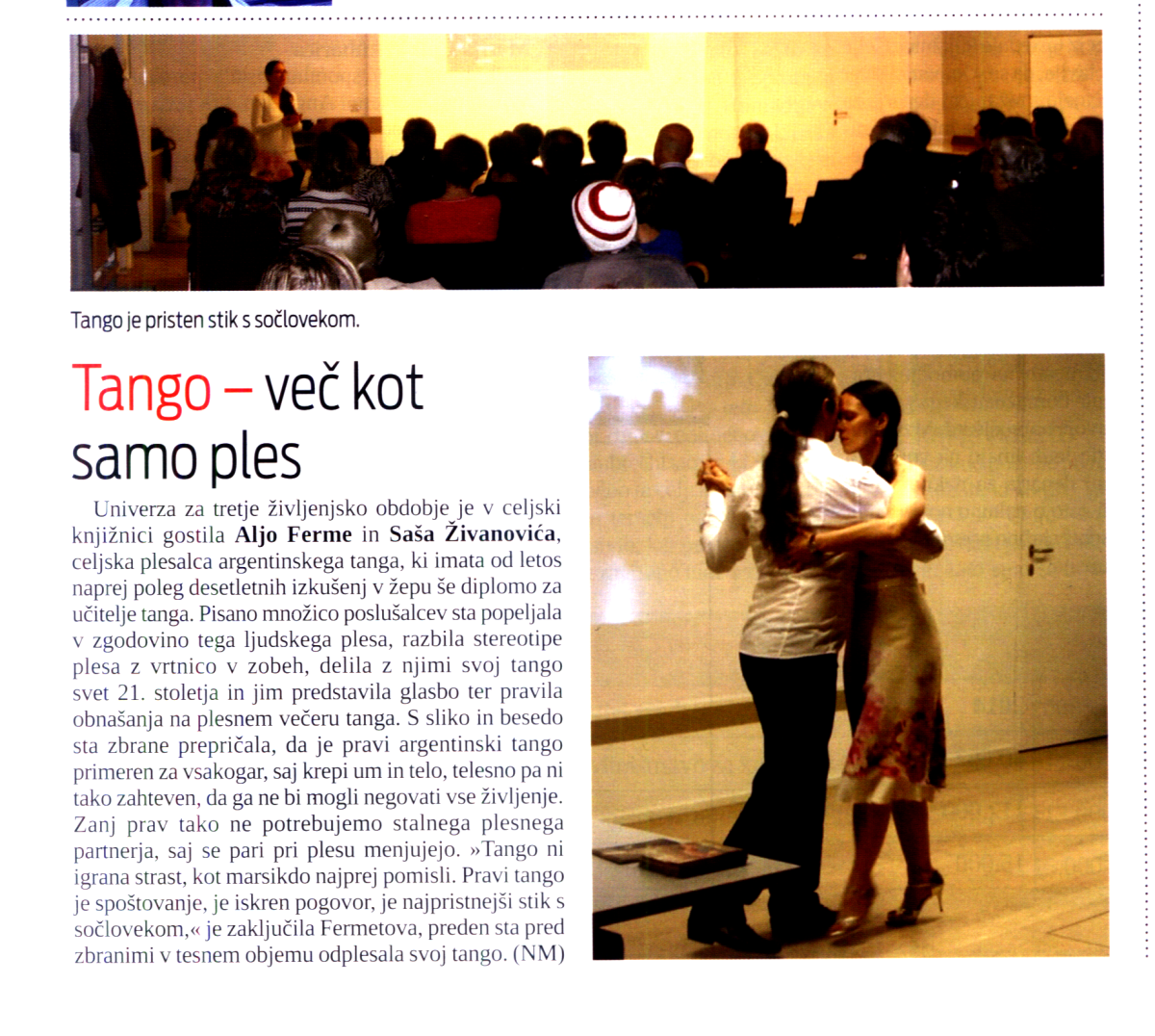 - An article about the Chat about tango, happening before a milonguita in café Beli vol, Celje, published in Celjan on June 24 2015 and on web portal Novice.si.
