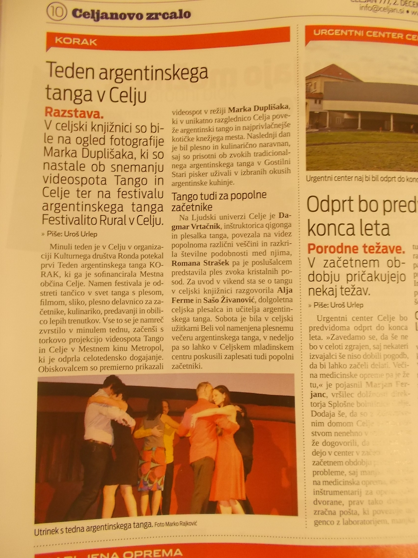 - An article about our little festival KORAK 2015, published in Celjan on December 2 2015.